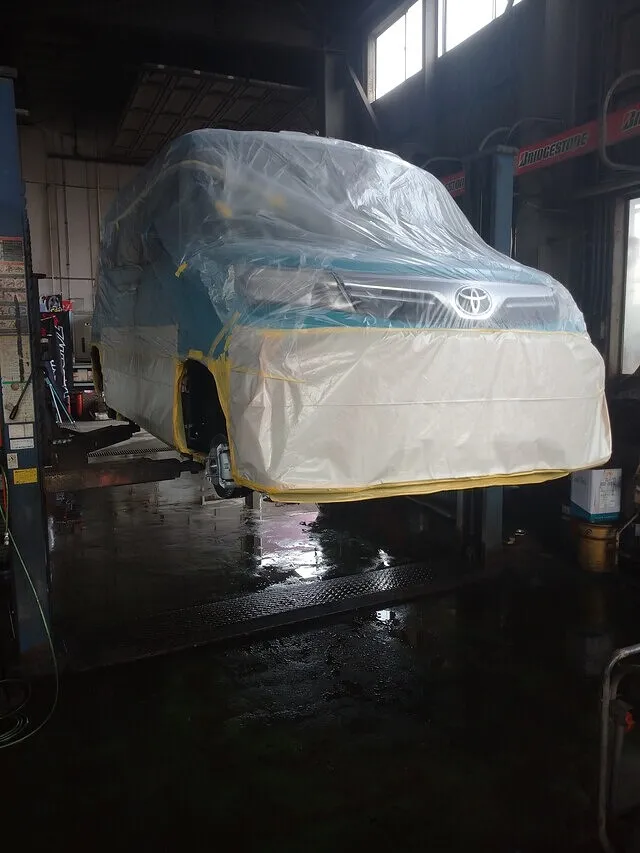 外板に塩害ガードが付着しないよう厳重にマスキングし、マフラーやアンダーカバーなど取外し準備完了です