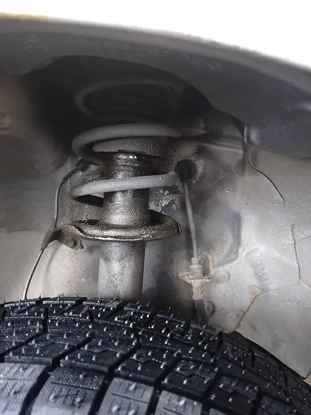 ショックアブソーバーのオイル漏れは、普段ご使用していても気付きにくい故障、本当にダメになると段差で上下動が収まりにくく、フワフワした乗り心地になったり、ギシギシ音がしたりします。