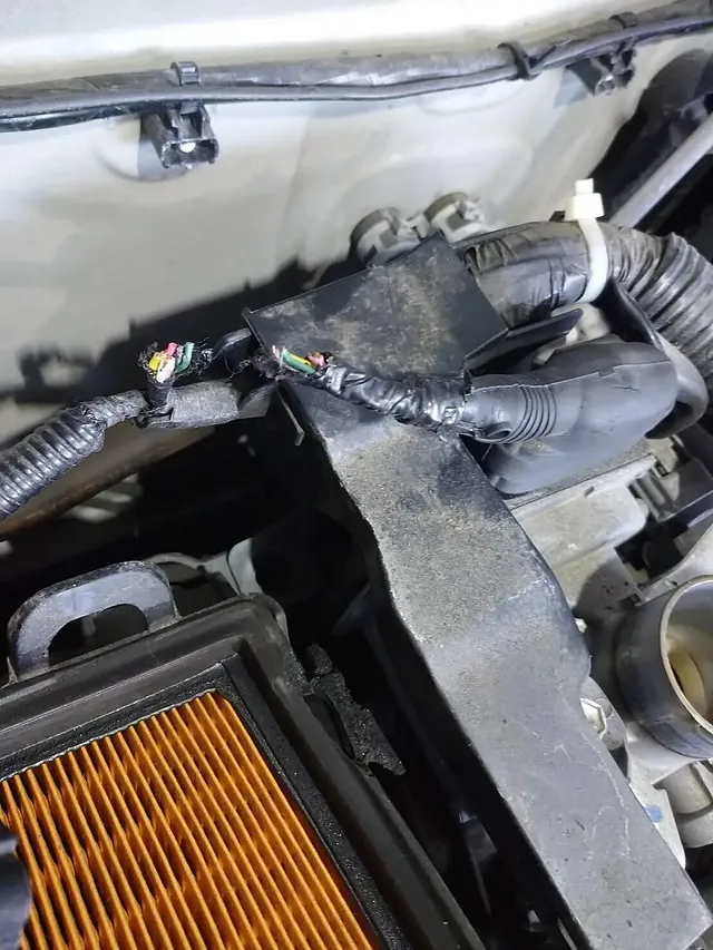 原因はおそらく小動物がエンジンルーム内に侵入し噛み千切ったように思われます。