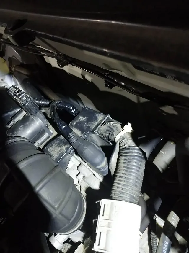 コンピューター診断機を使用し故障部位の特定、点検をしたところ、コンピューターとスロットルボディをつなぐ配線が6本断線していました。